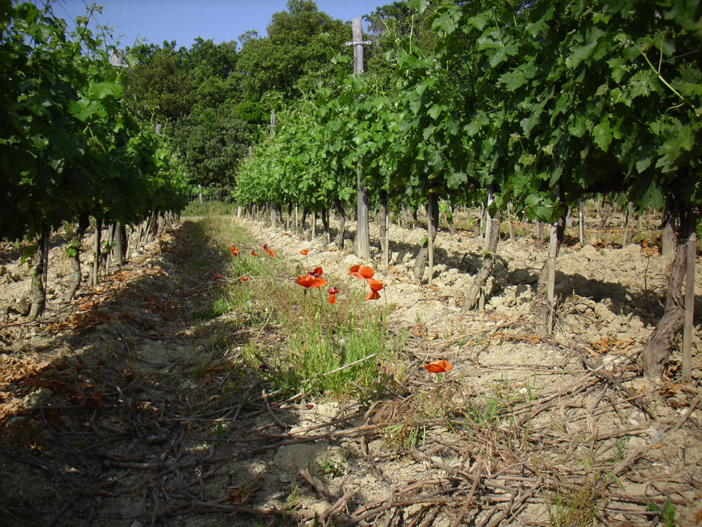 Le uve provengono dalla nostra vigna piantata su terreni declivi a sud-ovest tipici della fase argillosa e scheletrica di Bolgheri. Le forme di allevamento sono cordone speronato e una variante personalizzata dell'alberello.
